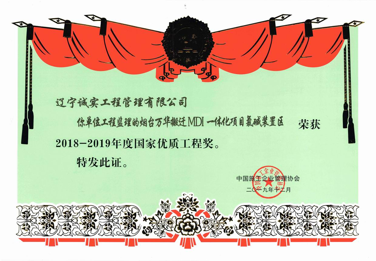 2018-2019年度國家優(yōu)質(zhì)工程獎(jiǎng)(煙臺萬華搬遷MDI一體化項(xiàng)目氯堿裝置區(qū))