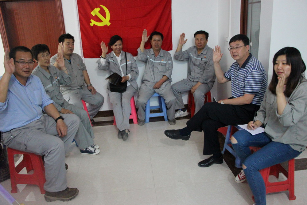 我公司監(jiān)理的中海油惠州煉化“三聚”項(xiàng)目,去年末開工,現(xiàn)場近28名員工,其中黨員8人。隨著工程進(jìn)展人員還要增加,建立基層黨組織,發(fā)揮黨員先鋒模范作用,出色的為業(yè)主服好務(wù),是公司黨委工作目標(biāo)。由黨委提名,任潤東、劉金剛、韓英麗三人組成黨支部。選舉通過后,支部書記任潤東做了表態(tài)發(fā)言,黨委書記孫學(xué)良就本項(xiàng)目意義,黨員義務(wù)和責(zé)任做了講話。