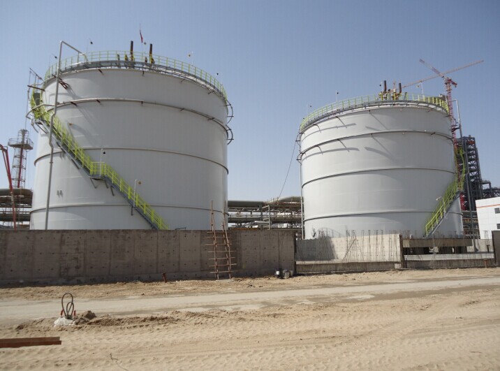 刷好外漆的兩臺(tái)氨罐