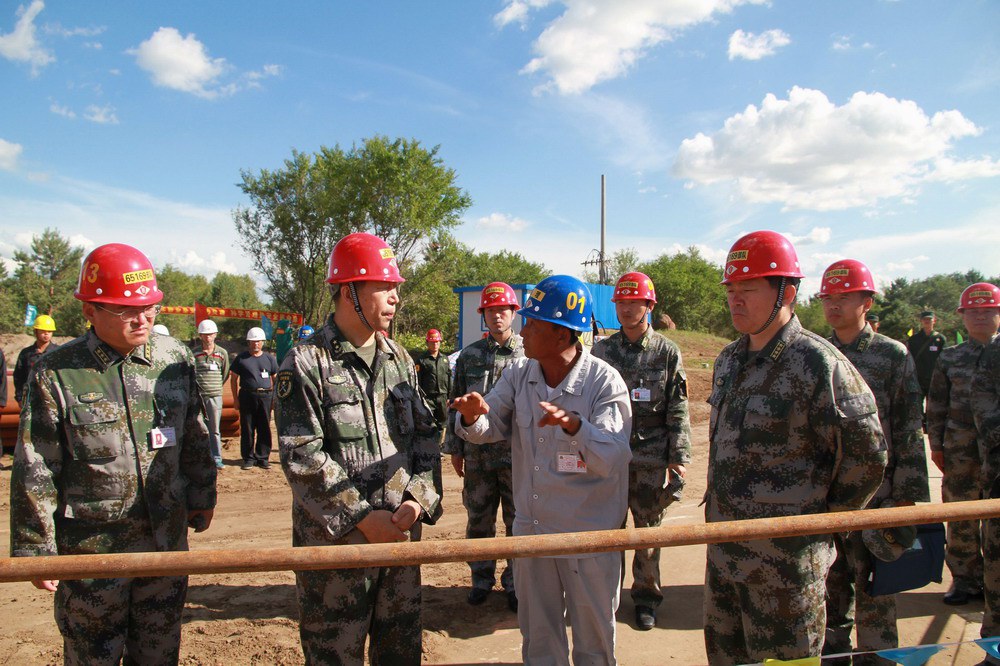 914油庫主任陪同沈陽軍區(qū)副司令鐘志明進(jìn)行現(xiàn)場考察